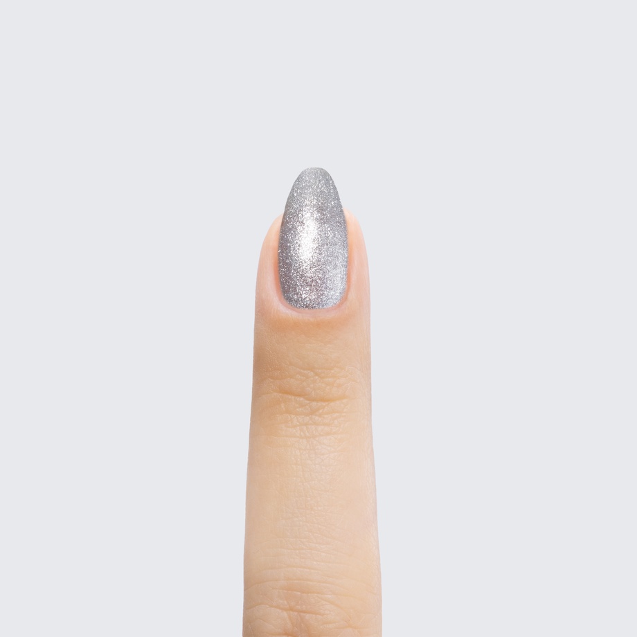 Pure silver. Metallic finish. Opaque. Cool undertone.