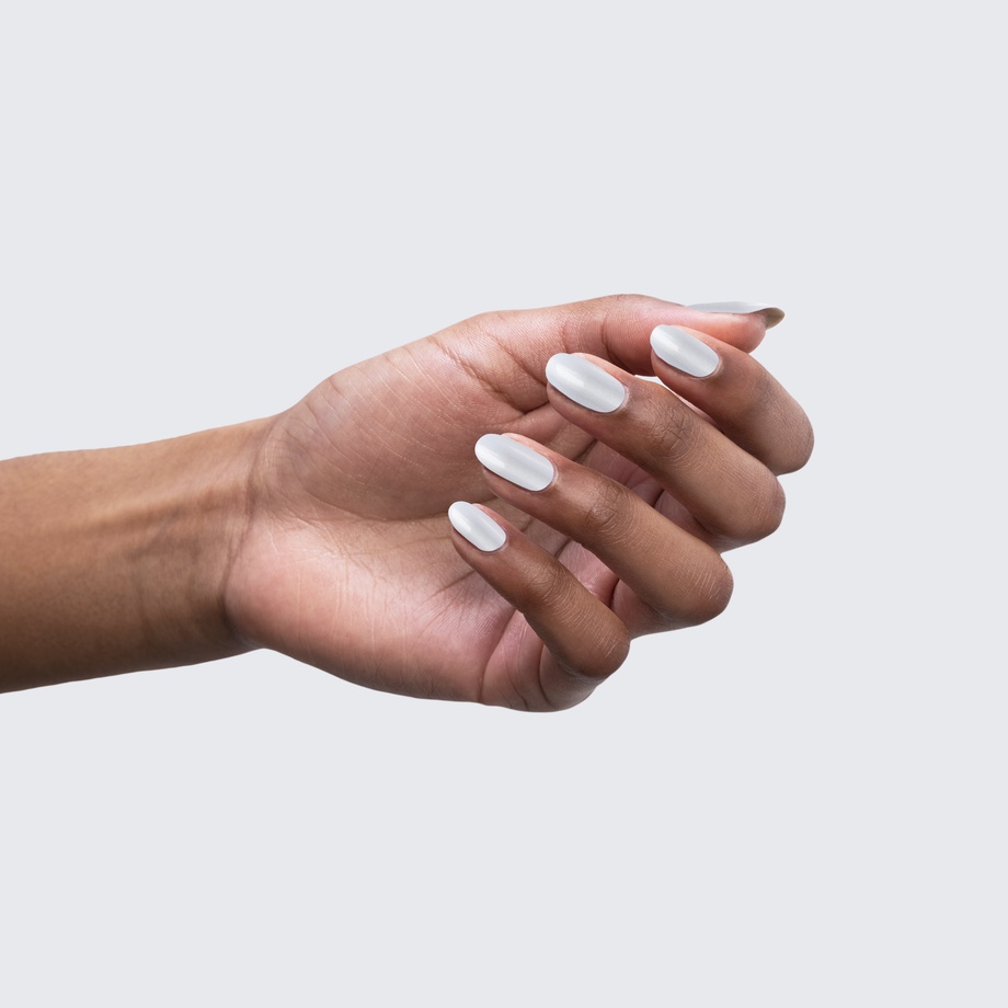 White. Pearl finish. Opaque. Cool undertone.